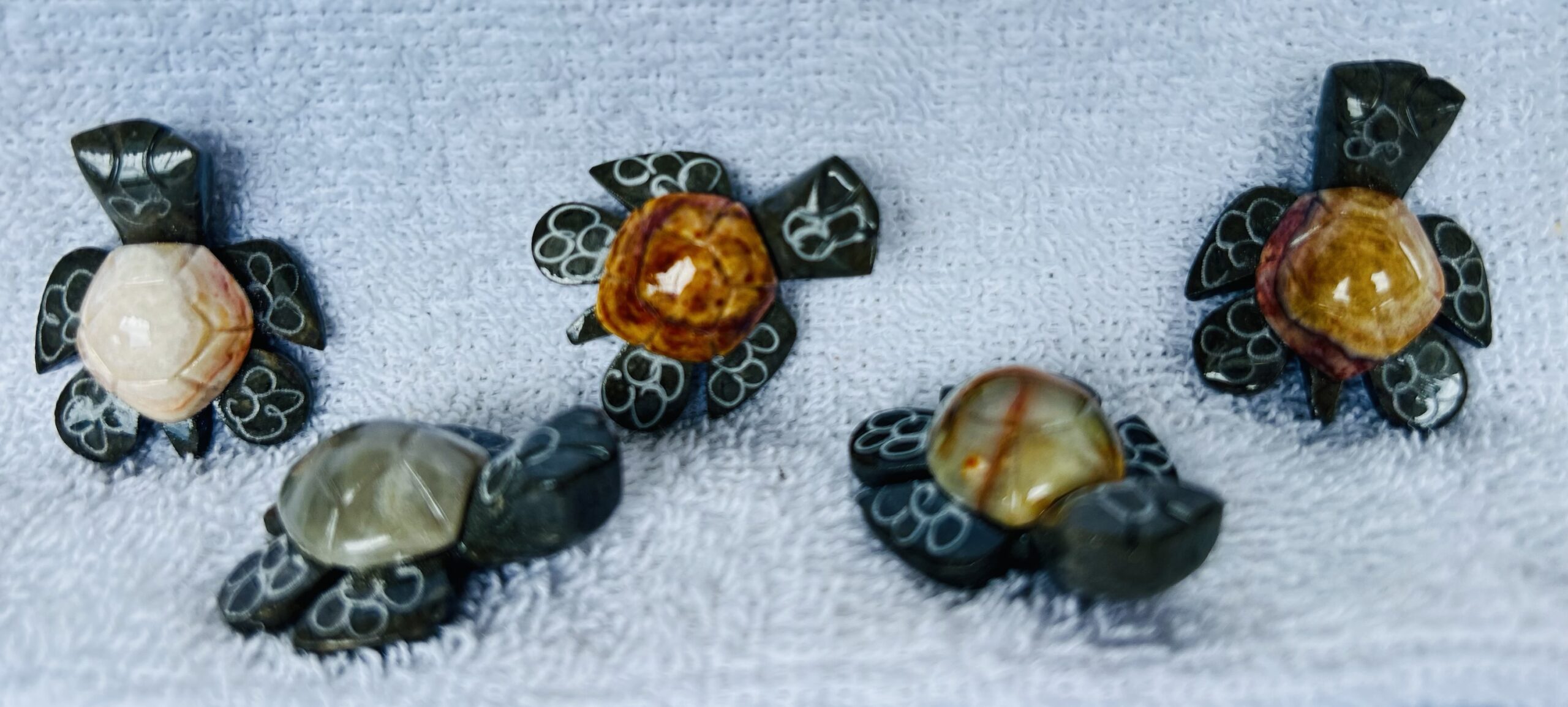 Tortuga de mármol elaborada en piedra de mármol. Diferentes colores naturales.